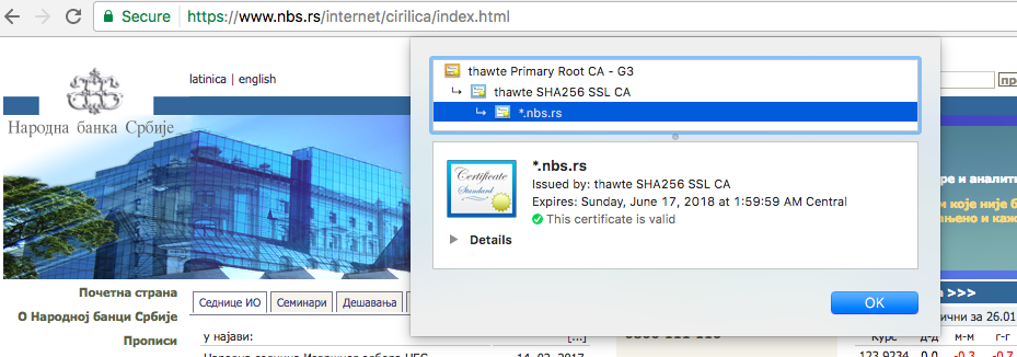 - Serbian Electronic Goverment sites are secured by Comodo and National Bank by Thawte.